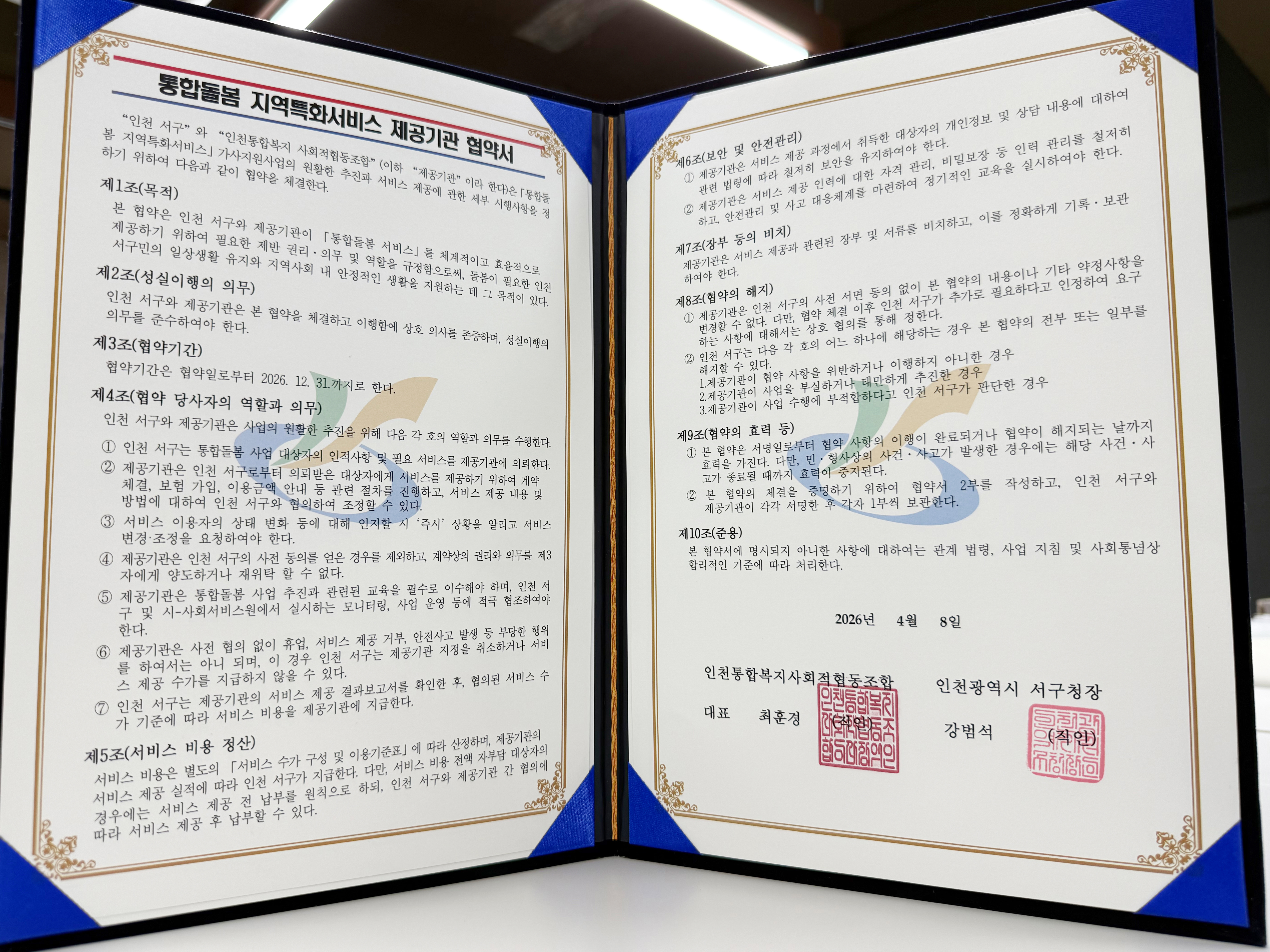 이번 서구청 지정은 조합이 그동안 남동구(방문목욕), 중구(가사지원), 미추홀구 (2권역 가사+이동지원 / 전 권역 방문목욕) 돌봄 통합지원 서비스 제공기관에 이은 쾌거로, 인천 내 사회적 경제 조직 중 독보적인 전문성을 인정받은 결과로 풀이된다.