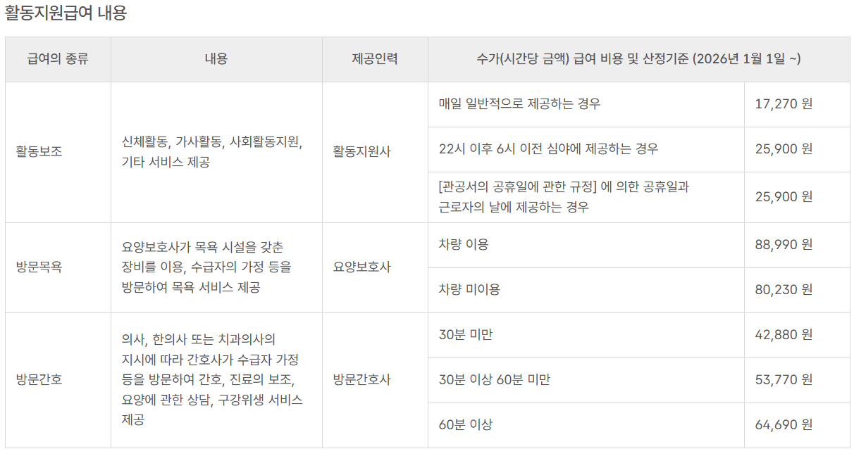 장애인활동지원 활동보조 시간당 단가는 17,270원이며, 심야·공휴일·근로자의 날에는 25,900원입니다.